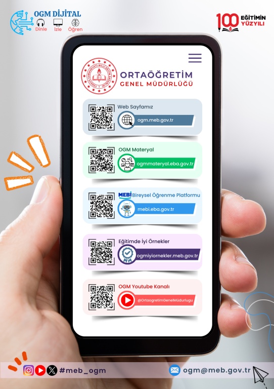Millî Eğitim Bakanlığının her yerde ve her zaman eğitim düsturu ile hazırlamış olduğu dijital içeriklere ulaşmak için karekodları okutunuz...